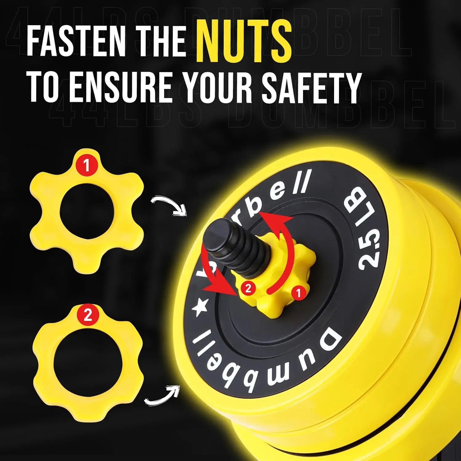 DOUBLE LOCK DESIGN: There are 2 kind of fixed nuts to ensure your safety. Just assemble the dumbbell plate with 2 nuts and you can get different weights to start your exercise.