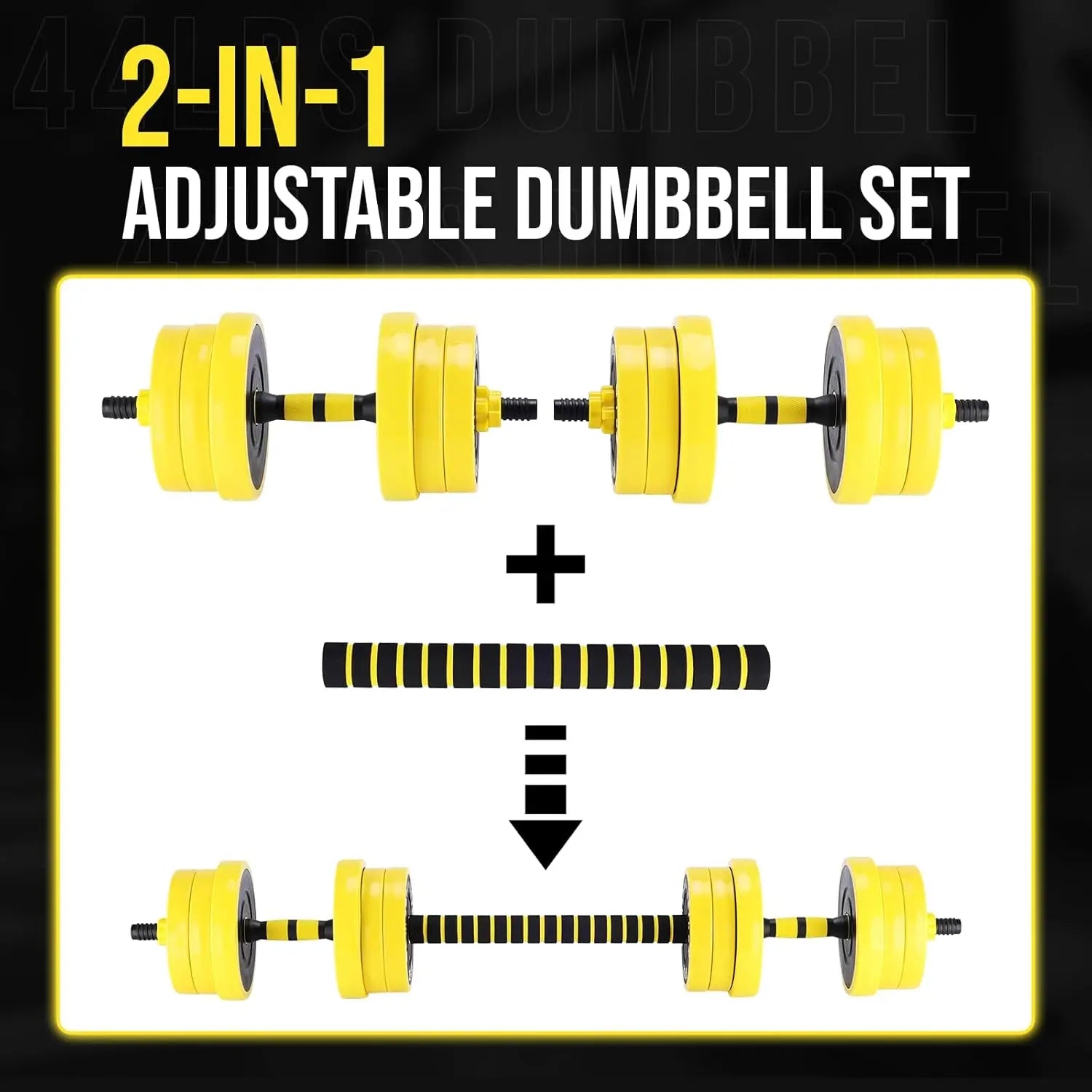 2-In-1 Adjustable Dumbbell Set, 44 Lbs Dumbbell Weights Used As Dumbbell and Barbell Set Comfortable Handle for Home Gym