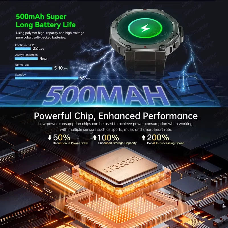 Use it continuously for 8-12 days after 2 hours of charging, ensuring that your smartwatch can pass even the longest adventure.
