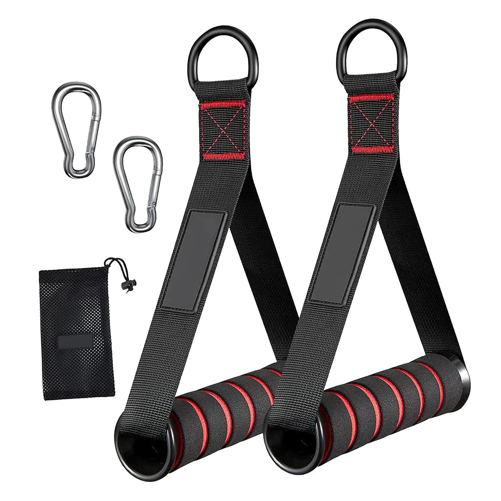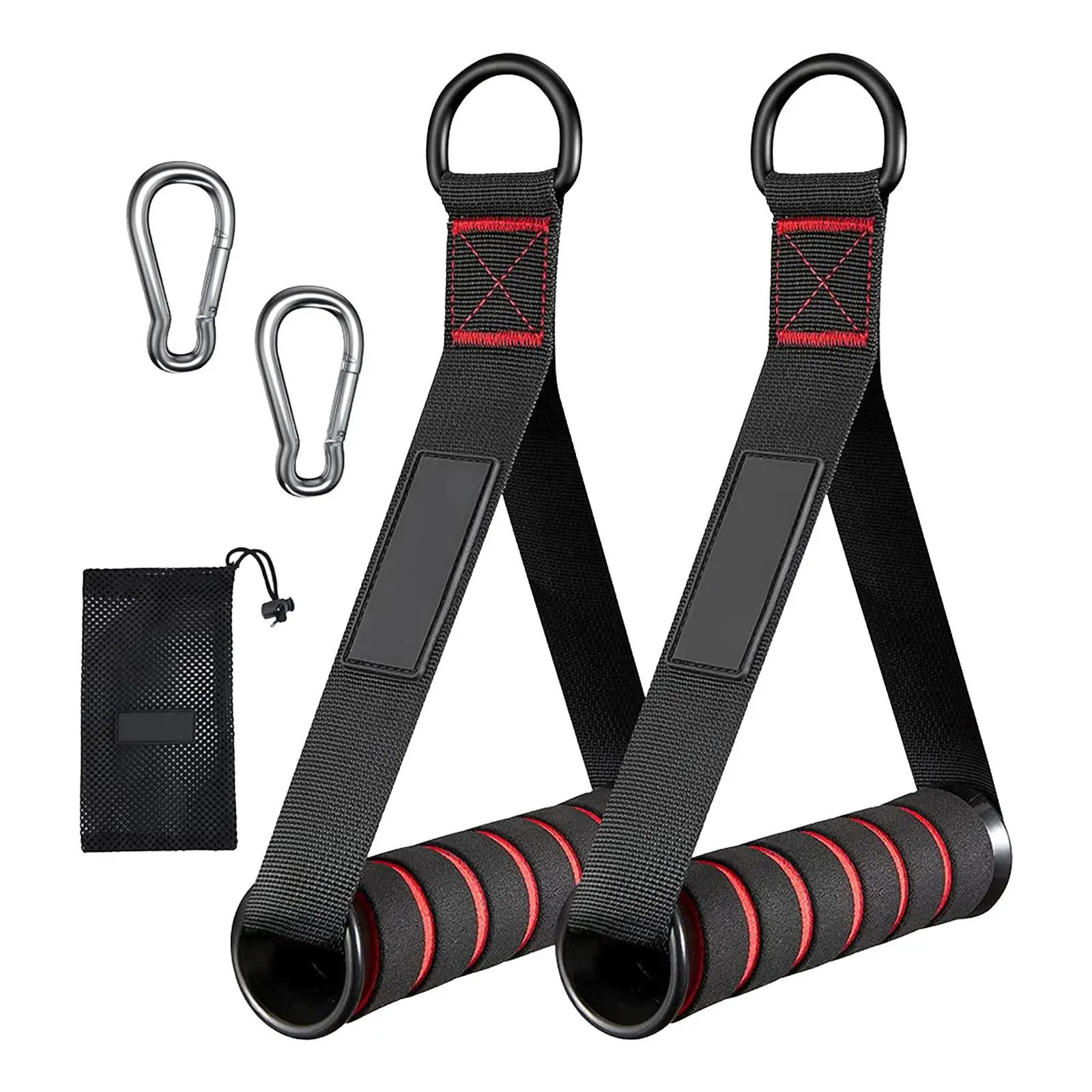 【Package Contains】The package includes 2pcs exercise handles, 2pcs carabiners, and 1 mesh carrying bag for storage in a gym bag.