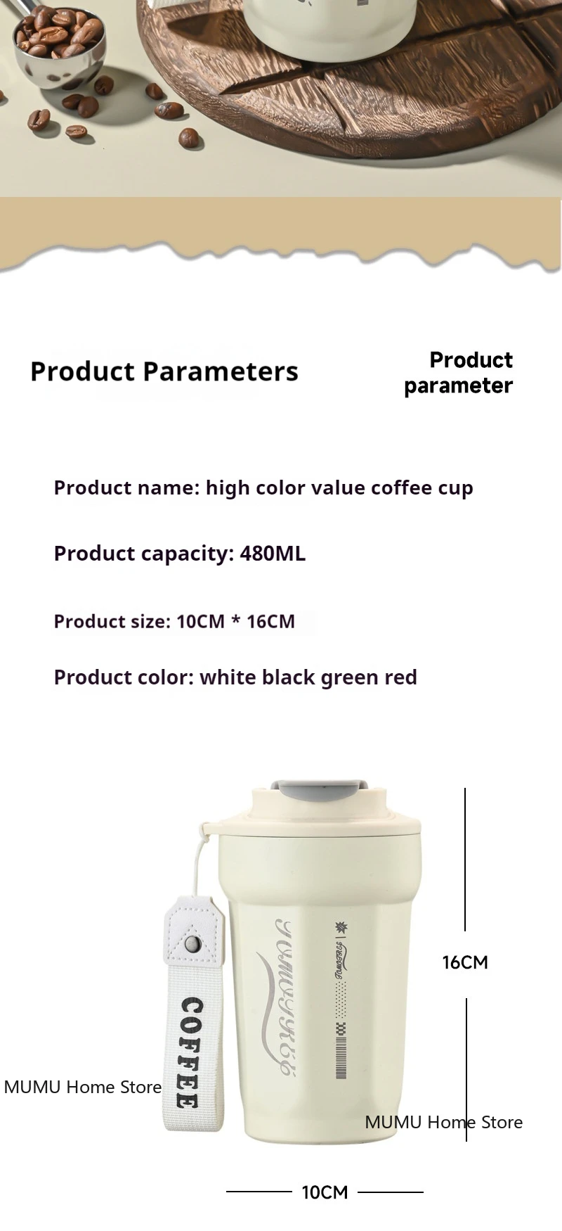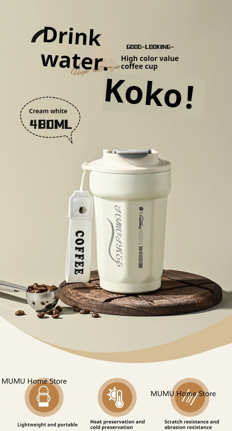 480ML Coffee Mug 316 Stainless Steel Vacuum Flask Keeps Cold and Heat Thermal Mug Car Insulated Cup Tumbler Travel Water Bottle