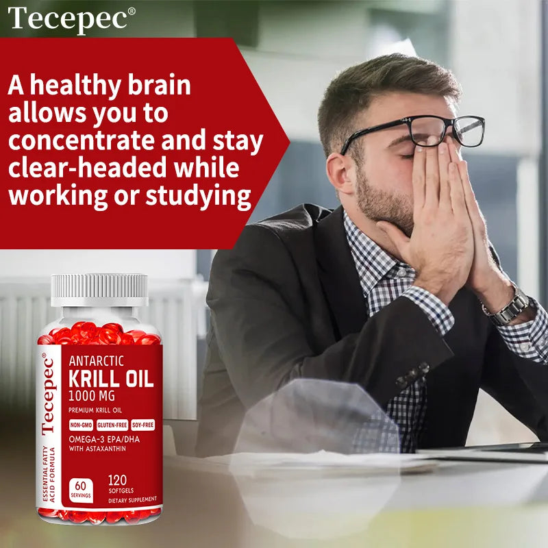 Antarctic Krill Oil 1000 Mg with Omega-3 EPA, DHA, Astaxanthin and Phospholipids for Heart, Brain and Skin Health Support
