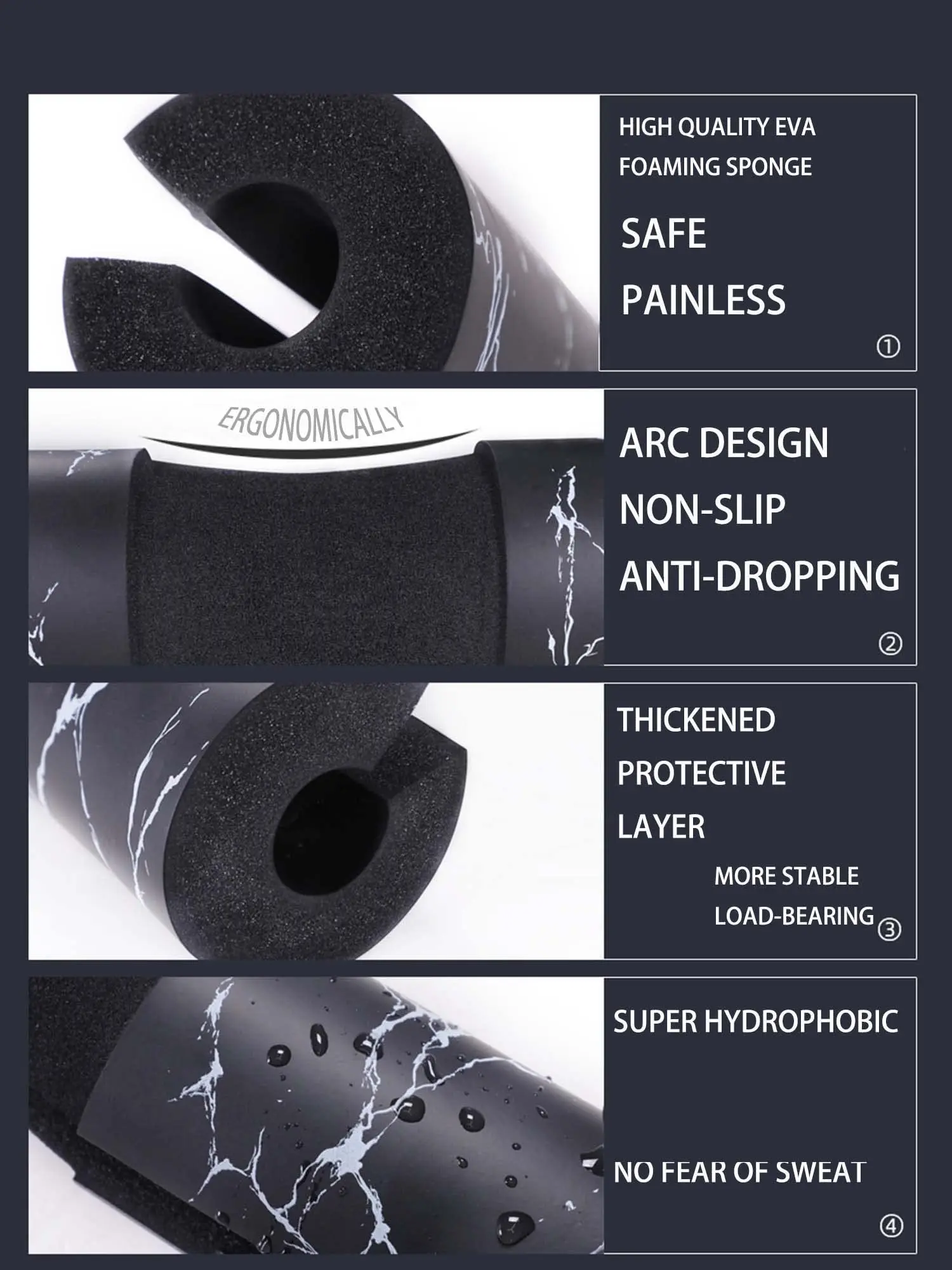 3..EFFECTIVE DESIGN:Reach and easy to use -- our squat bar pad for Olympic bars have been designed to distribute weight acrossyour shoulders, relieving you of any neck pain during squats
