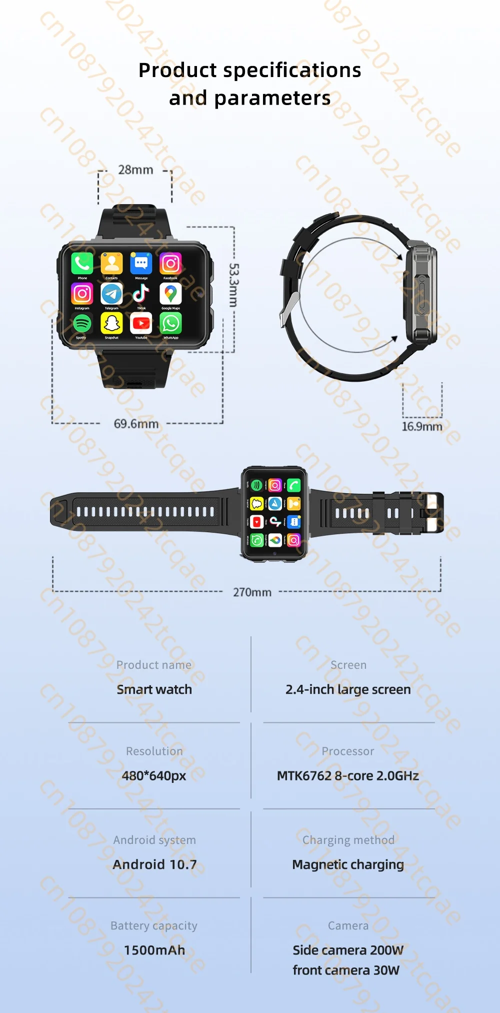 BIg Screen VP999 Smart Watch Android OS Phone 1500 mAh Video Call 4G WiFi GPS APP Download Dual Camera Deepseek Smartwatch