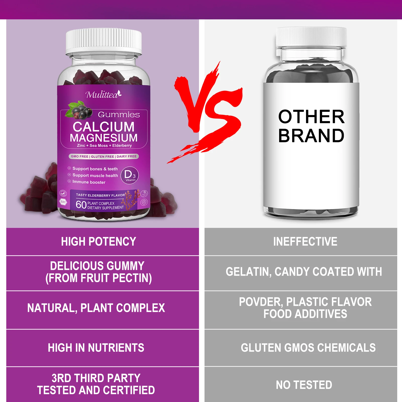 ELDERBERRY TASTE & ABSORPTION: Swallowing large capsules, tablets is a chore, these delicious active chewable calcium gummies are professionally formulated with potassium, magnesium glycinate, zinc, D3 and natural vitamins to make calcium easily absorbed.