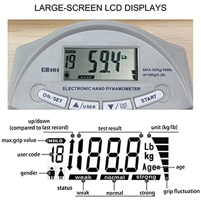 Digital Electronic Hand Dynamometer Grip Strength Measurement Meter Auto Hand Grip Power 200 Lbs / 90 Kgs Sports Tools for Hands