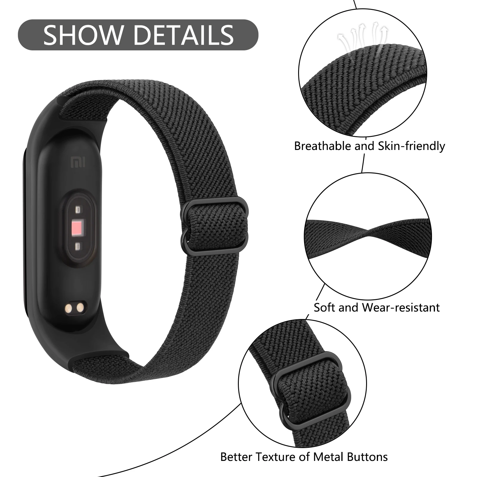 Feature 3: Elastic Nylon Watch Strap For Xiaomi Mi Band 4 Band