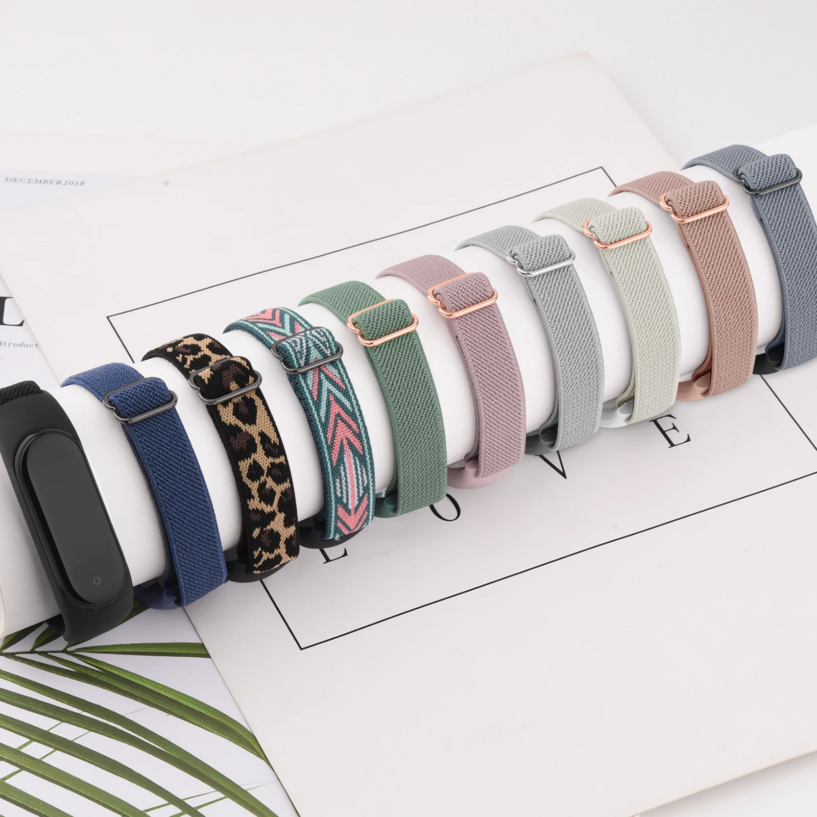 Elastic Nylon Watch Strap For Xiaomi Mi Band 7 6 5 4 3 Band Adjustable Wristband For Xiaomi Mi Band 3 4 5 6 7 Strap Replacement