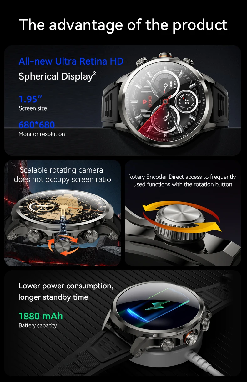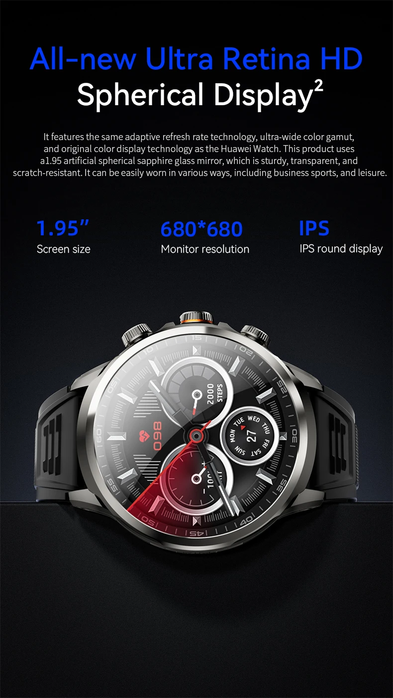 4. 1.95 inch large screen with a resolution of 680*680, 900W HD side camera;