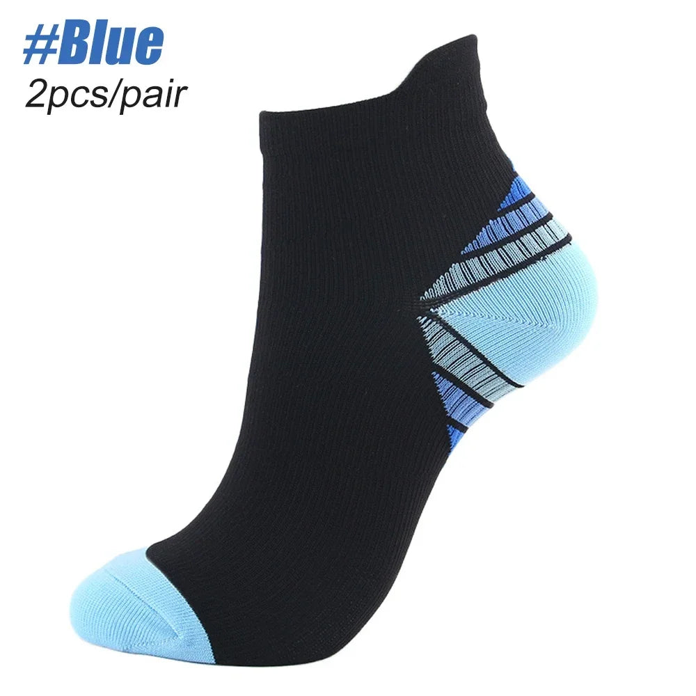 GOMOREON 1Pair Ankle Compression Sock for Men and Women, Low Cut Compression Running Sock with Ankle Support