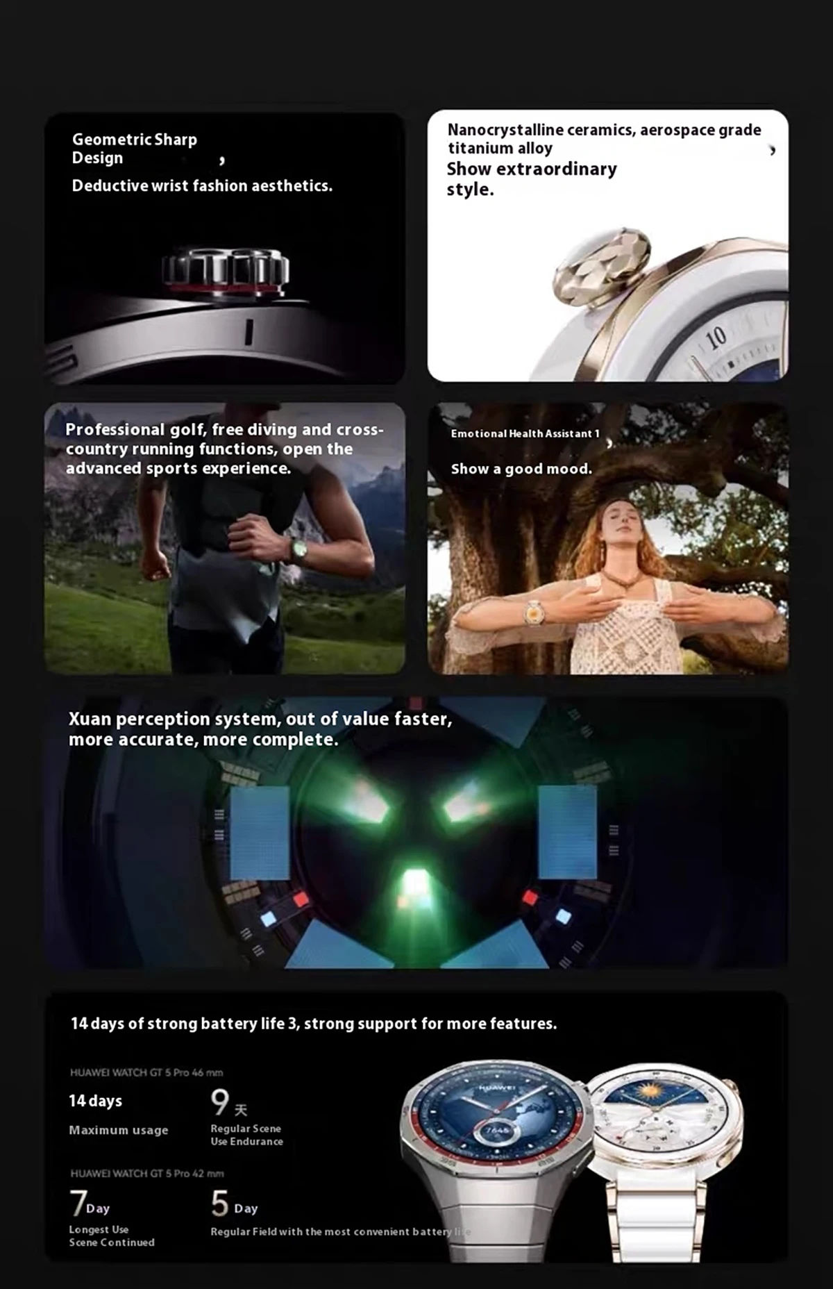 The new smart WATCH GT 5 Pro smart watch dazzle technology induction system advanced sports emotional health assistant long battery life.