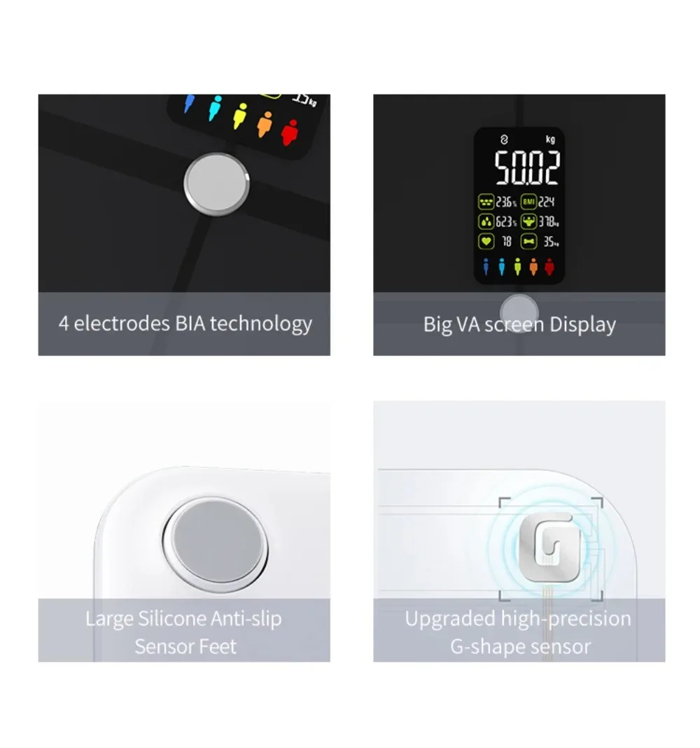2.Extra Large LCD Display: Different from other bathroom scales that only display weight, Our scales for body weight and fat built in algorithm can automatically calculate your body composition directly and shows your 8 essential metrics including Weight, Body Fat%, BMI, Water%, Muscle Mass, Heart Rate, Bone Mass and Body Type on VA display screen directly, help you get a clear view of your essential body measurements at a glance. Auto Calibration, Auto On & Off, Auto Zero, overload indication.