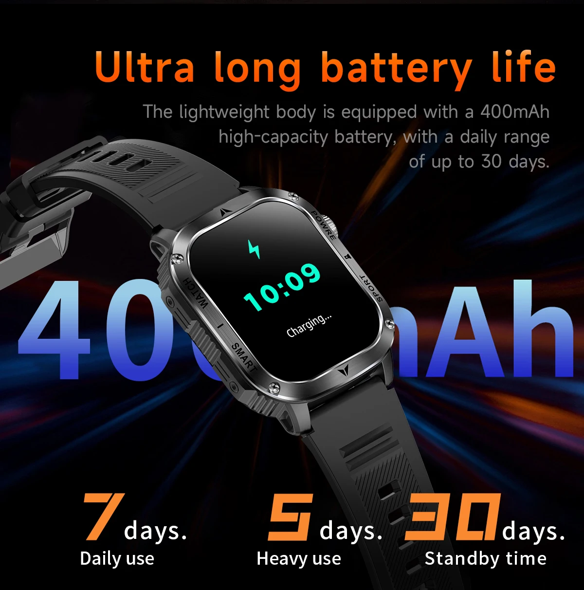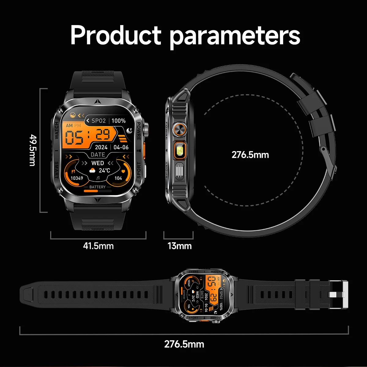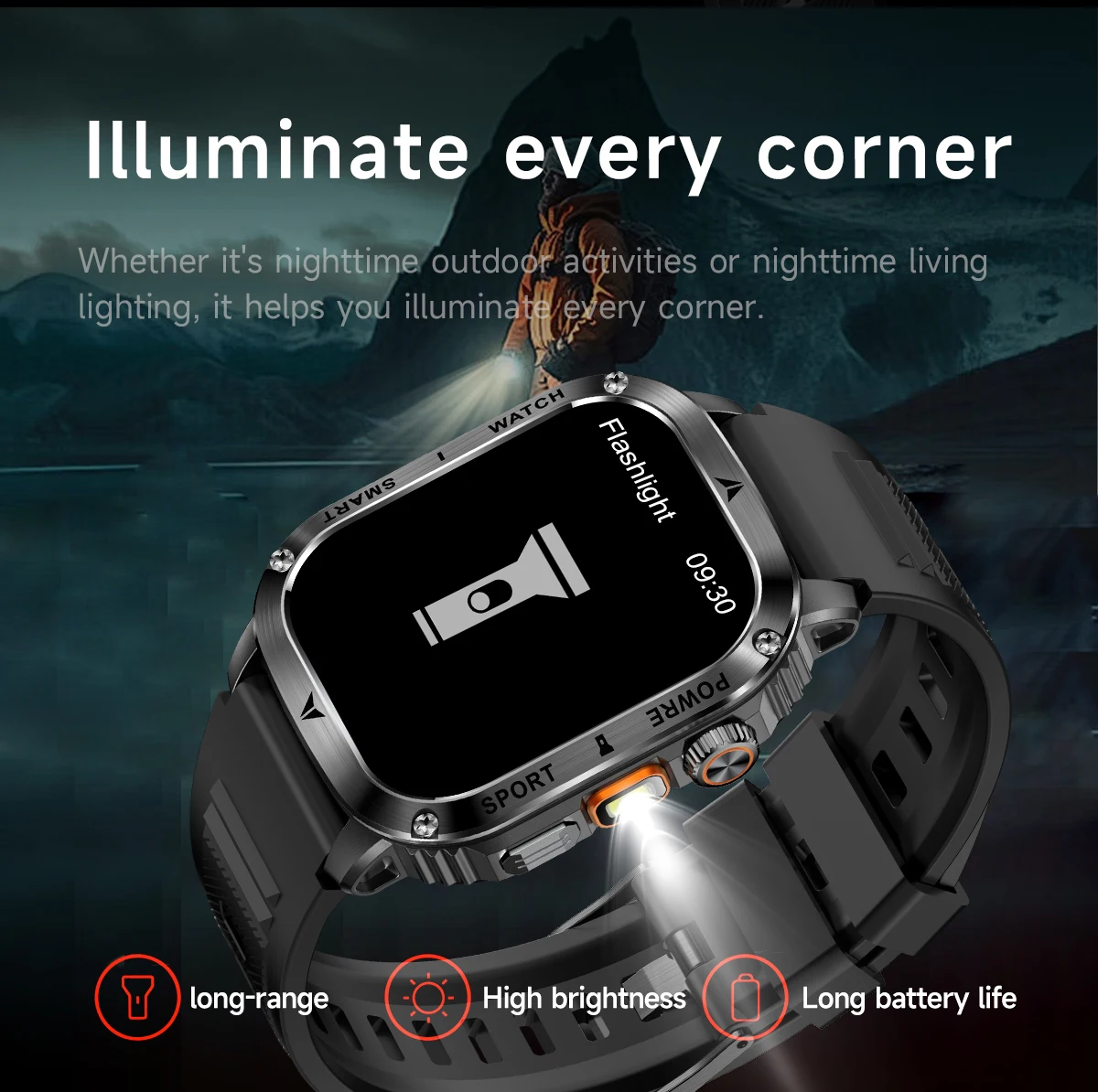 LIGE 2025 New Outdoor Flashlight Smart Watch Men 2.01” HD Screen 400mAh Bluetooth Call IP68 Waterproof Health Monitor Smartwatch