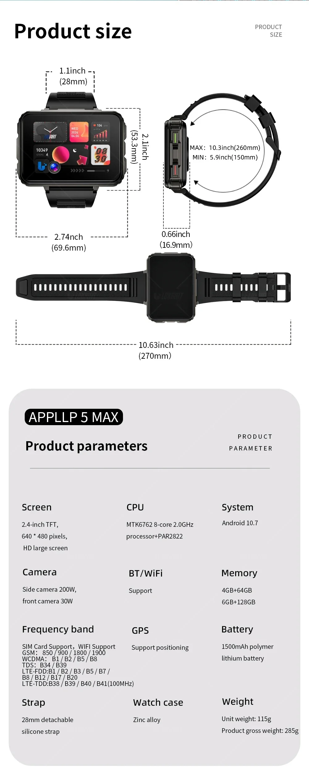 LOKMAT APPLLP 5 MAX Android Watch Phone Square Big Screen Wifi 4G Calls Smartwatches Dual Camera with Flashlight Gaming Watch