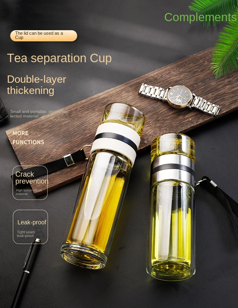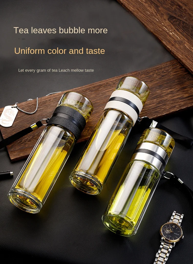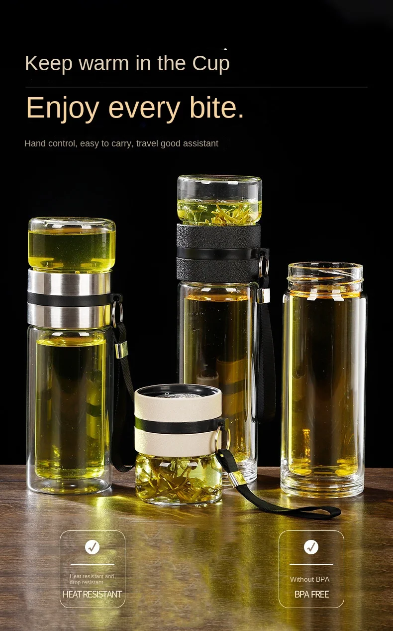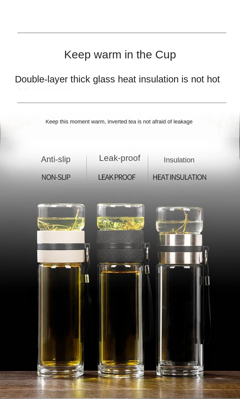 NEW Glass Bottle Double Wall Transparent Borosilicate Glass Teacup with Handle Portable Independent Tea Warehouse Drinkware