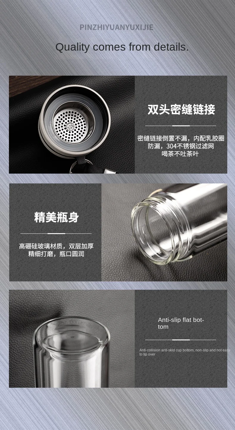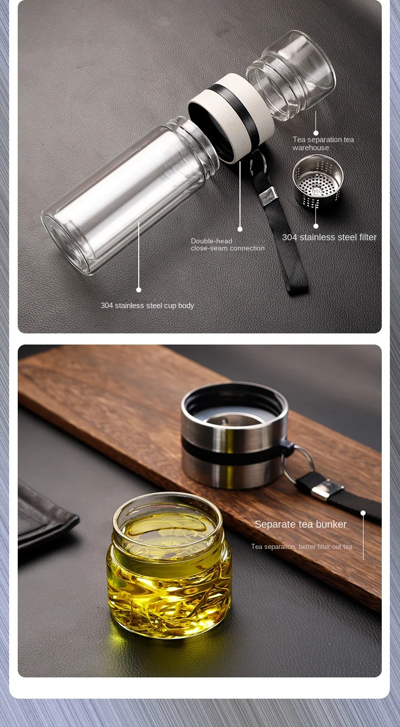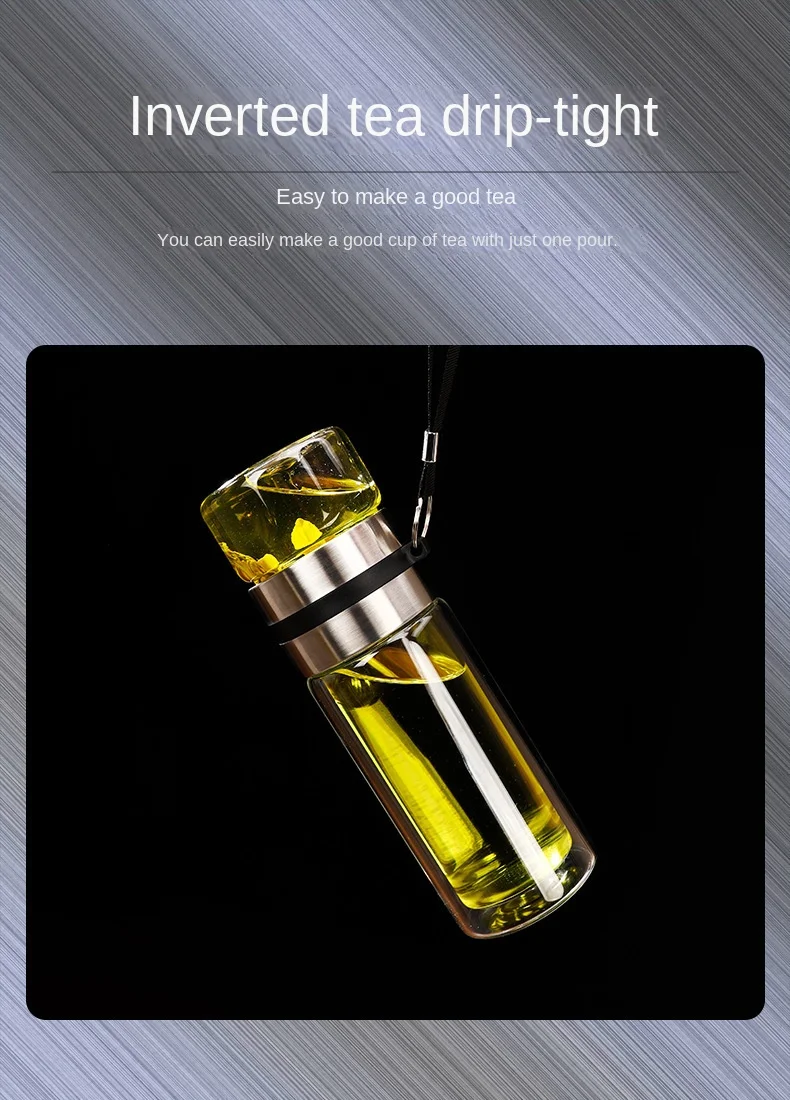 NEW Glass Bottle Double Wall Transparent Borosilicate Glass Teacup with Handle Portable Independent Tea Warehouse Drinkware