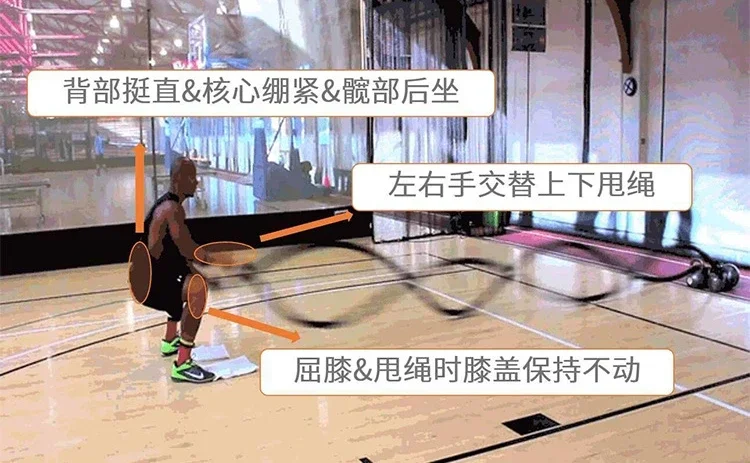 Training method: Fix the middle of the rope on a firm fixed object or weight, holding the rope 2 ends to start training