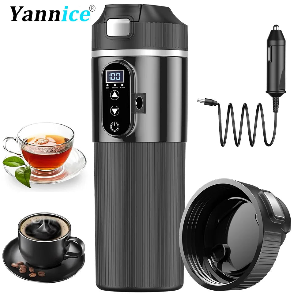 Portable 12V 24V Car Electric Heated Cup 500ml Smart Temperature Control Stainless Steel Touch Screen Insulated Thermos Cup For