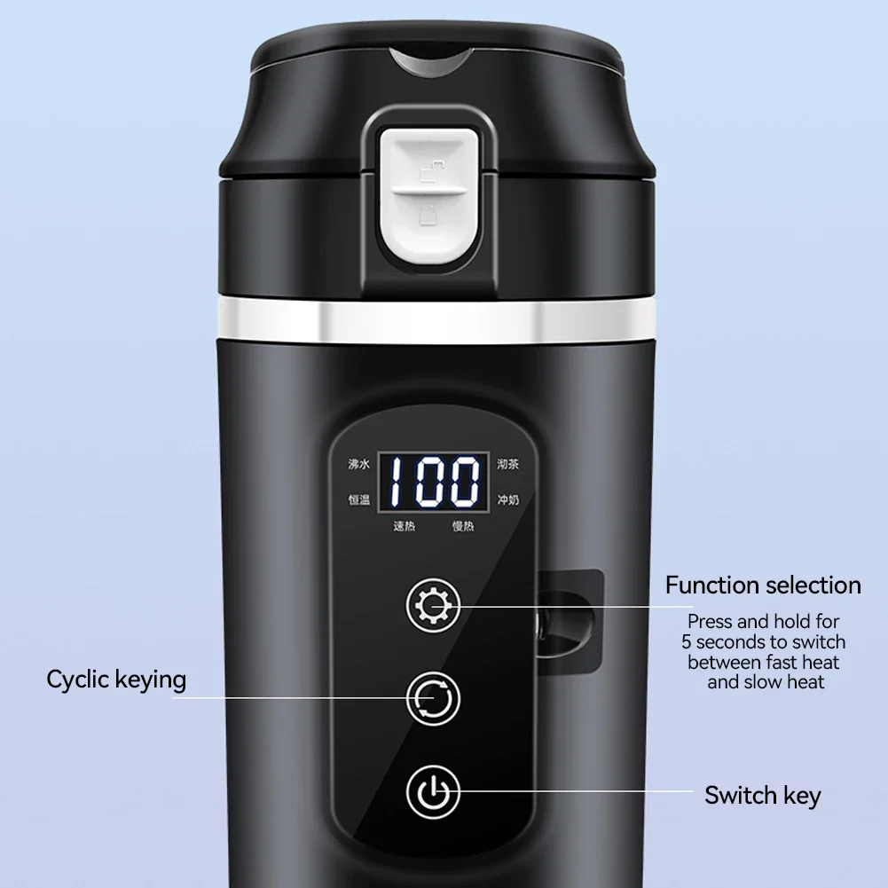 Portable Car Heating Cup Thermos Cup Stainless Steel 12V/24V Car Heating Cup Smart Temperature Control Coffee Milk Heated Kettle
