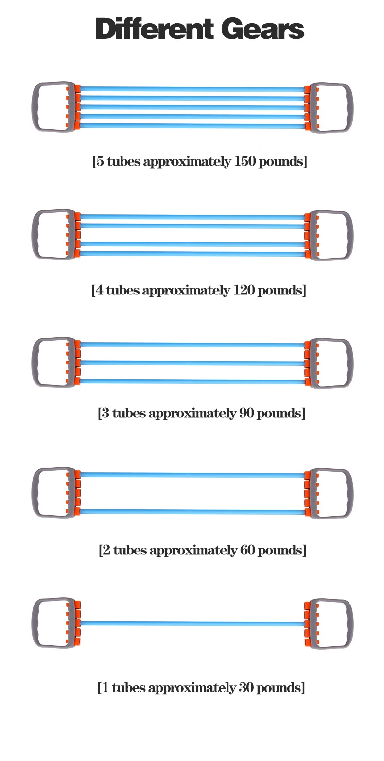 The chest extender has 5 levels of resistance and you should control the number of tubes to obtain different resistance levels.