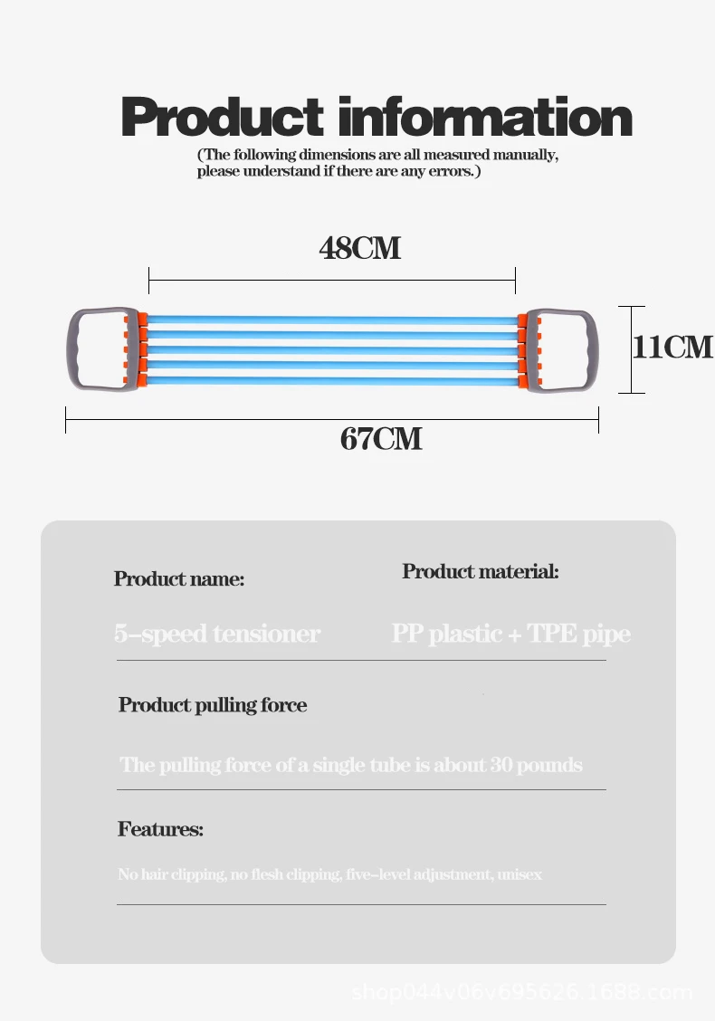 Our chest exerciser is designed with 5 removable rubber tubes that are strong enough not to break and without any irritating odour.