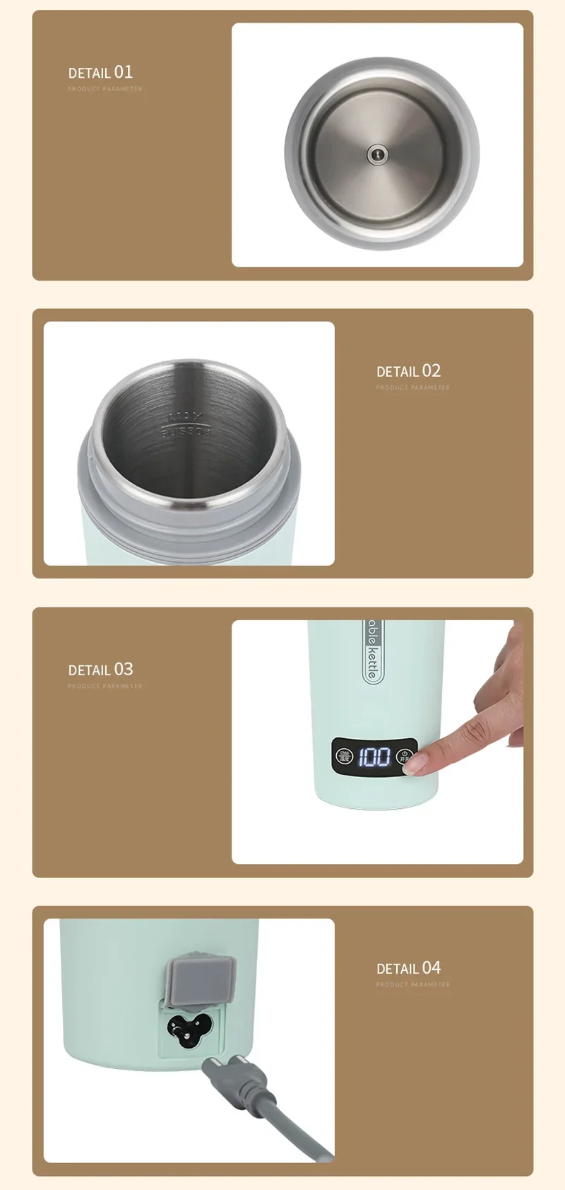Smart 4 Gear Boil Water Electric Heated Cup Portable Car Outdoor School Thermostat Warm Kettle Hot Water Bottle 220V 110V 12V