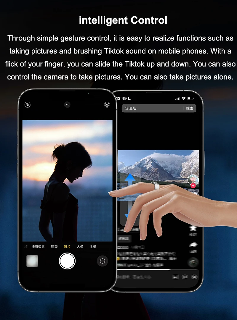* Intelligent control: You can easily realize functions such as taking photos and watching video with your mobile phone through simple gesture control. You can slide the video up and down with just a flick of your finger, and you can also control the camera to shoot, so that one person can take beautiful photos independently.