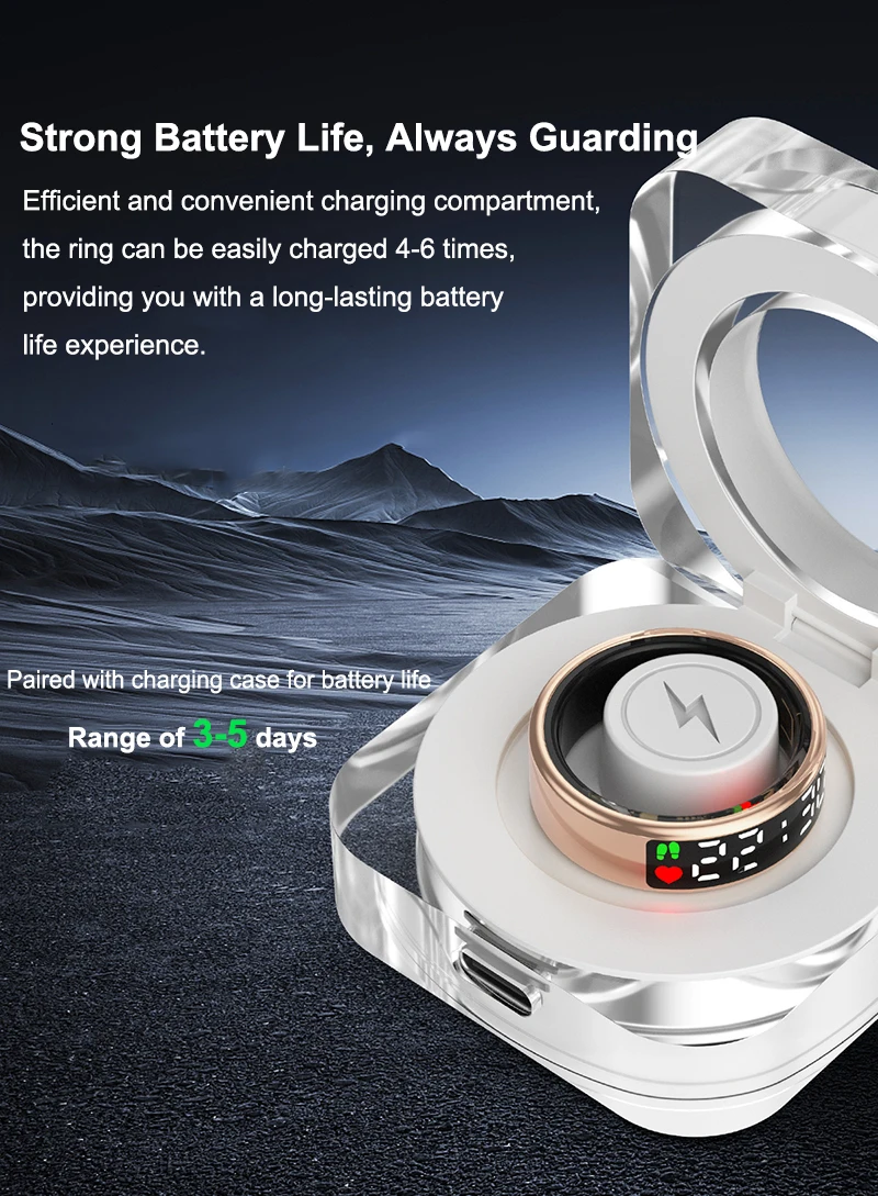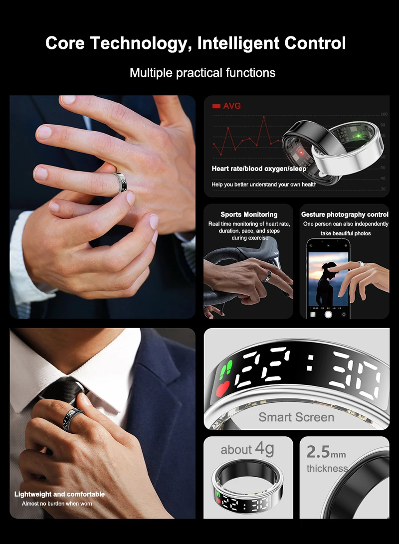 * Multi-function: supports mountaineering, cycling, running and other sports modes, and can monitor the heart rate duration, pace and number of steps in real time to help you explore a bigger world and expand your boundaries. After wearing the ring, it can support accurate measurement of heart rate, blood oxygen and sleep monitoring, and associate data with the mobile phone APP, so that you can pay more attention to your health and help develop good living habits.