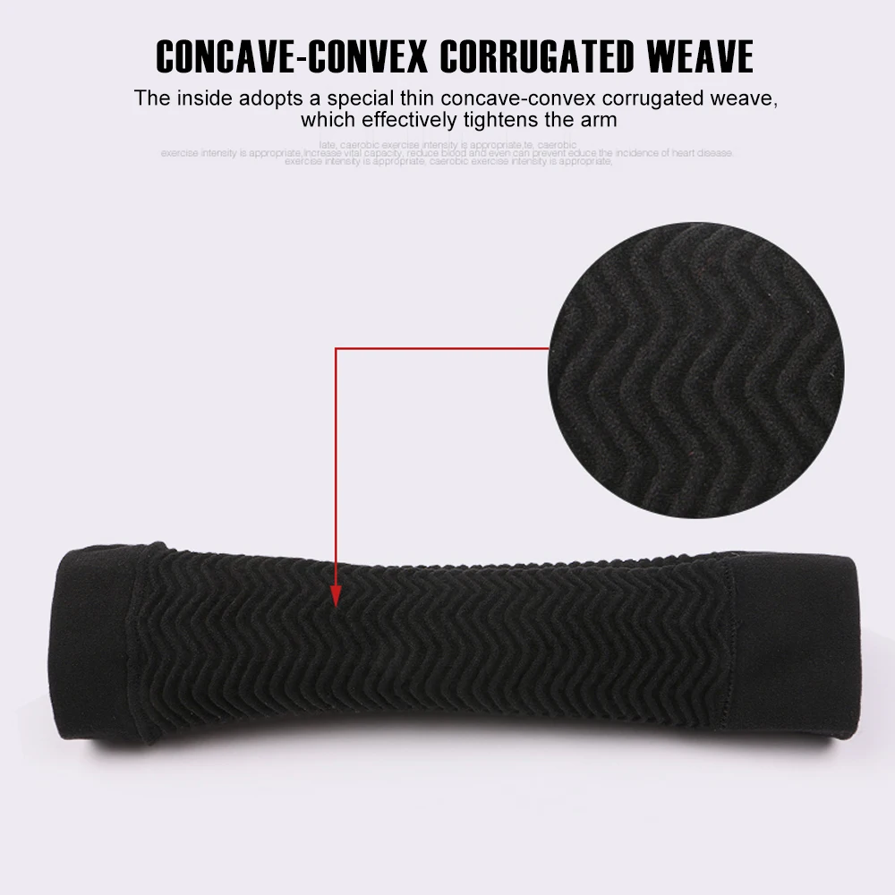 The corrugated fabric design creates friction on your skin while you're exercising. This simulates your blood circulation during movement, and simultaneously it helps massage your arms in order to tone and slim them. Wear it to the gym along with your workout session or wear it as your taking a walk to the park. Lightweight and thin material makes it stay hidden underneath your clothes.