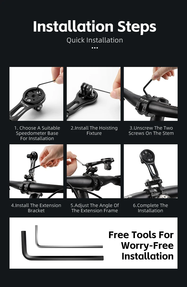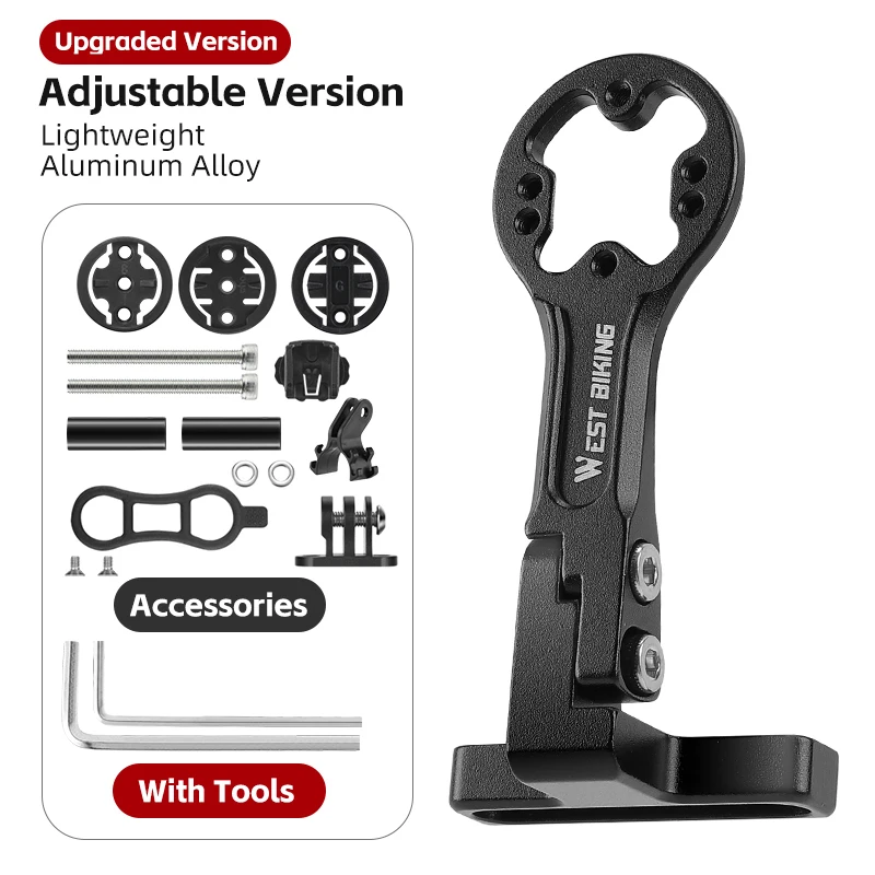 WEST BIKING Adjustable Bicycle Computer Bracket Bike Speedometer Extension Holder Garmin Bryton Wahoo Aluminum Alloy Bike Mount