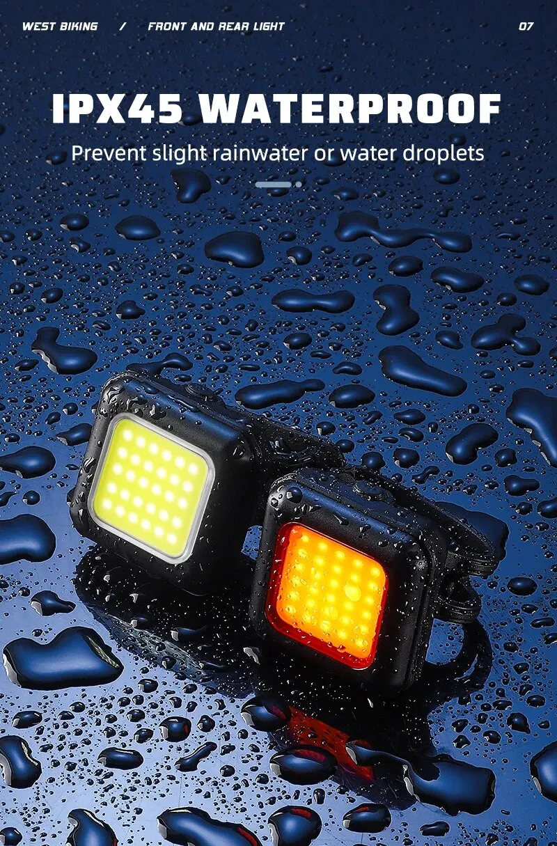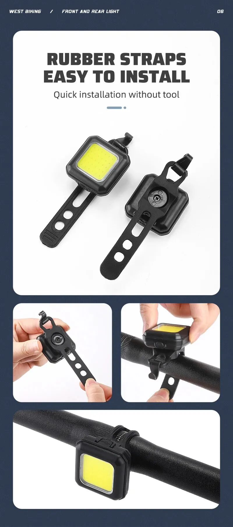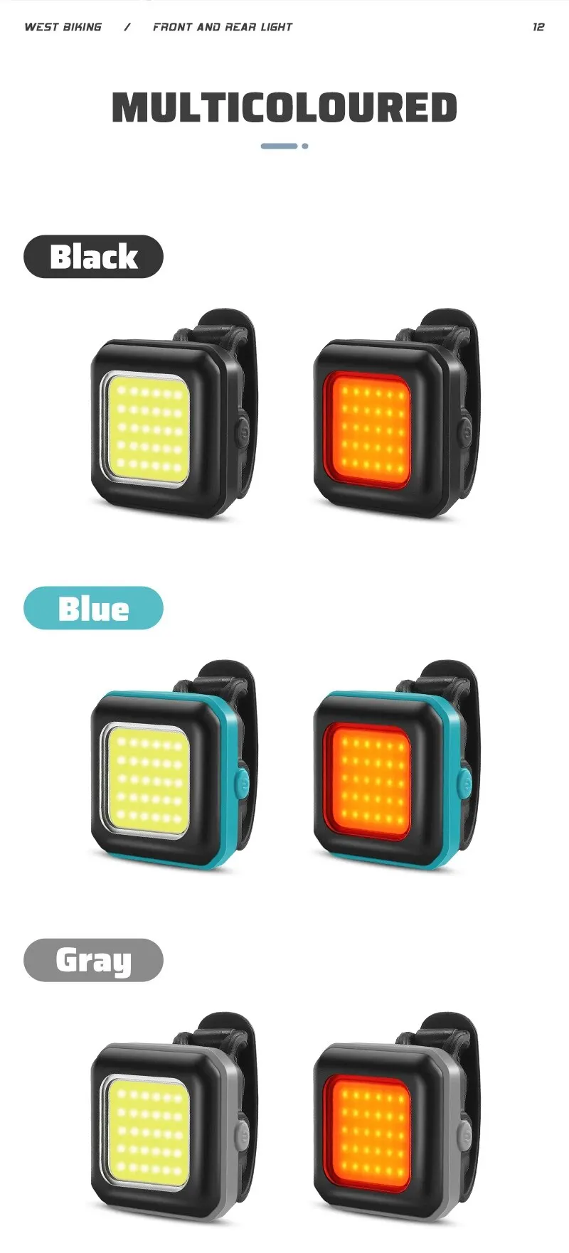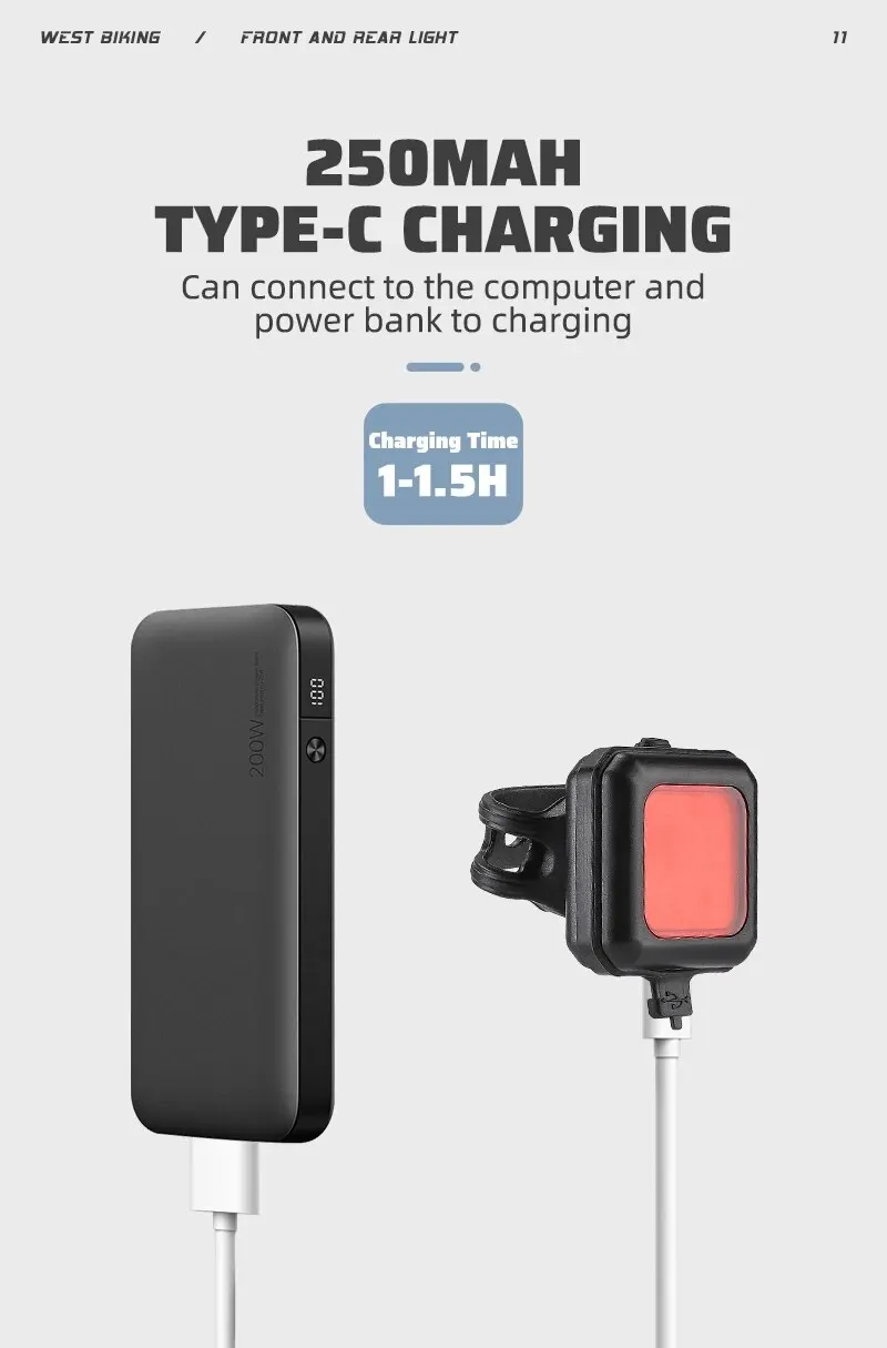 WEST BIKING Cycling Mini Front/Rear Lights 250mAh Rechargeable LED High Visibility Taillight Bicycle Front Fork Light Hiking