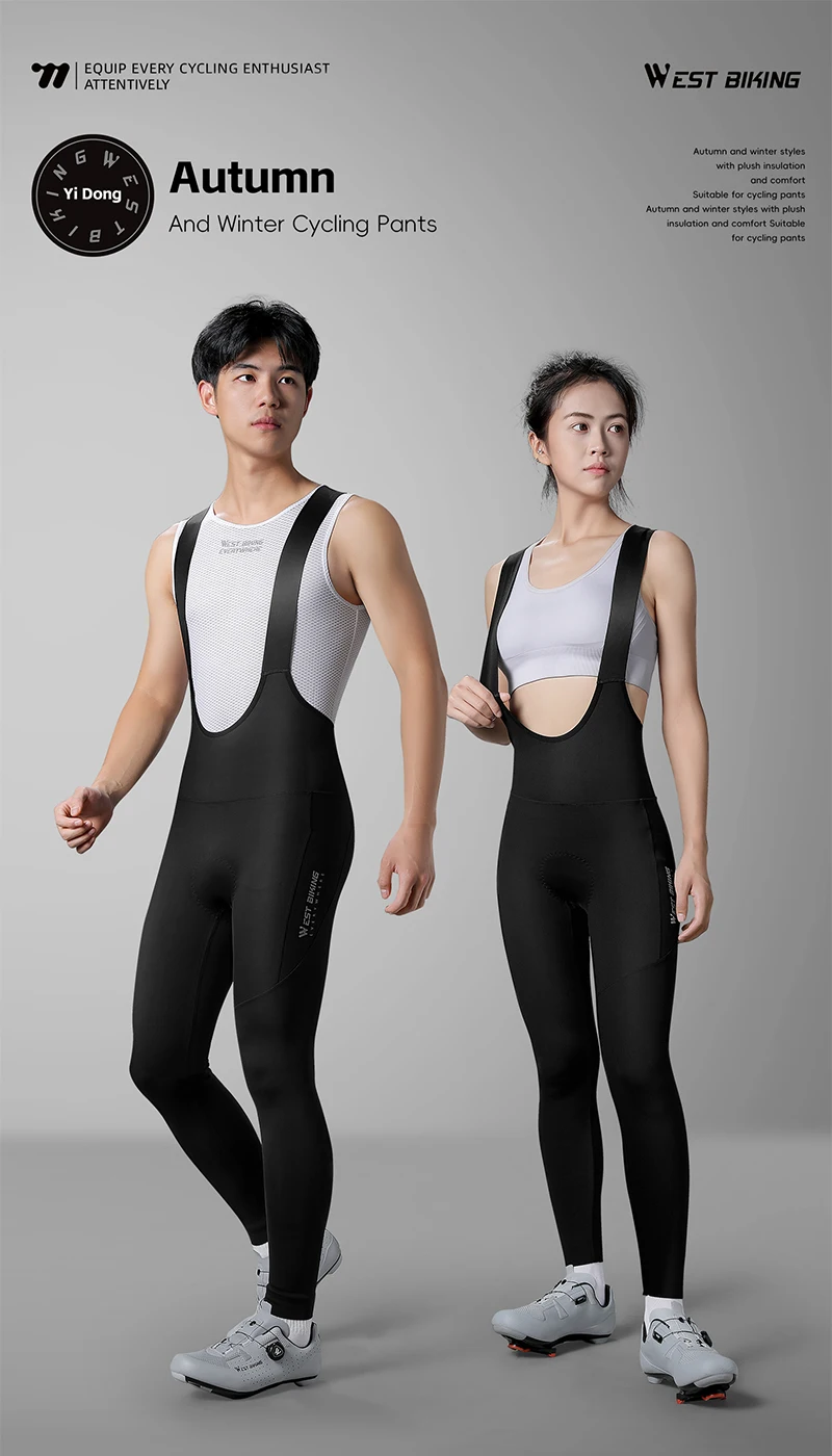 WEST BIKING Thermal Fleece Cycling Bibs Pants Autumn Winter Bicycle Tights Trousers Keep Warm Bike Pad Pants Men Women 0-20°C