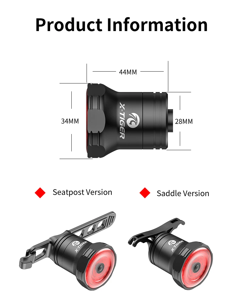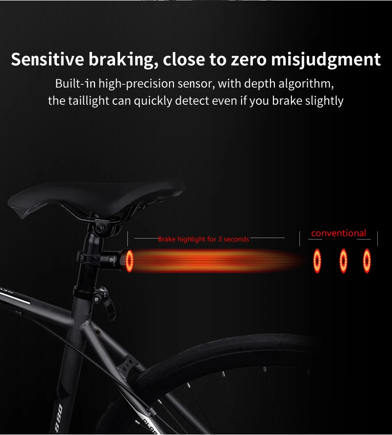 • Smart Brake Sensing :The light has a smart brake sensing feature that automatically turns on when you brake, making it safer to ride at night.