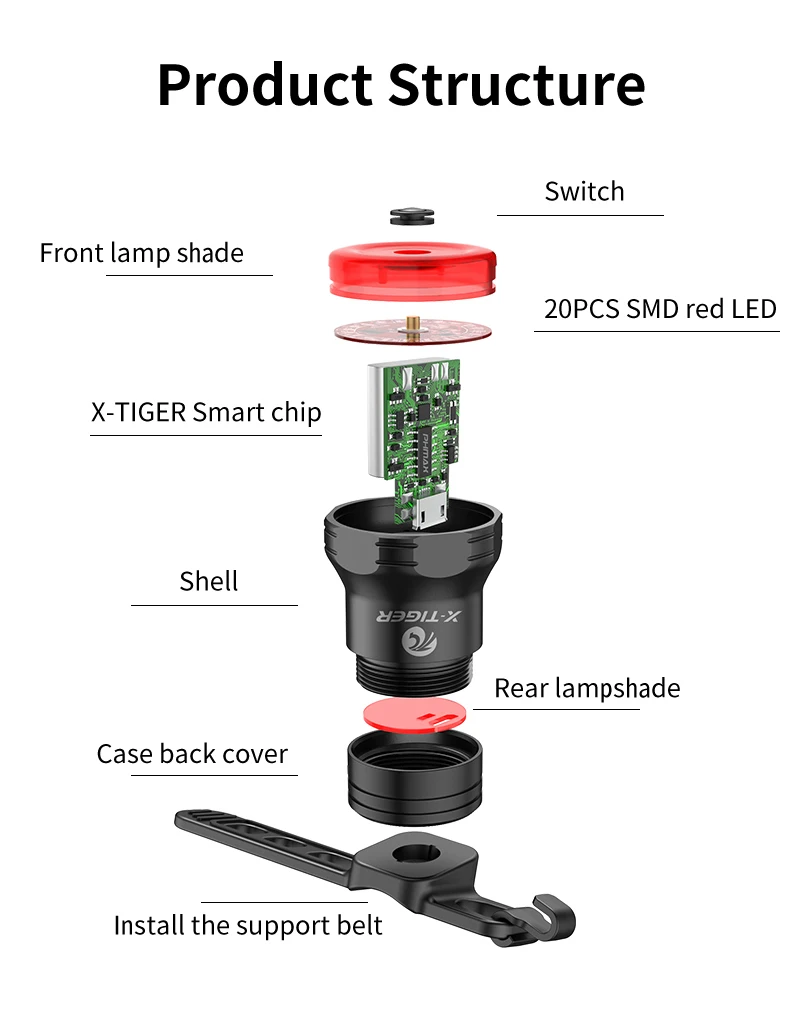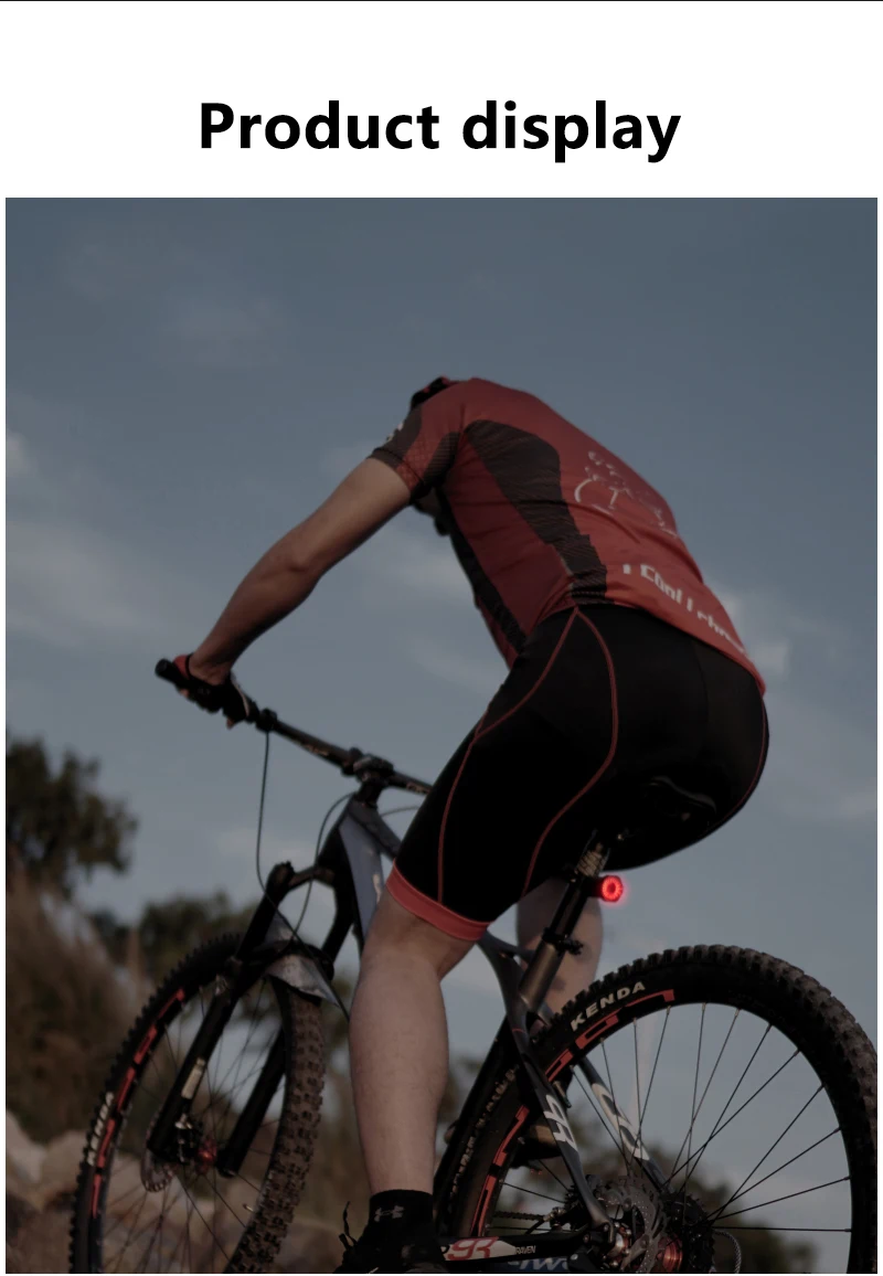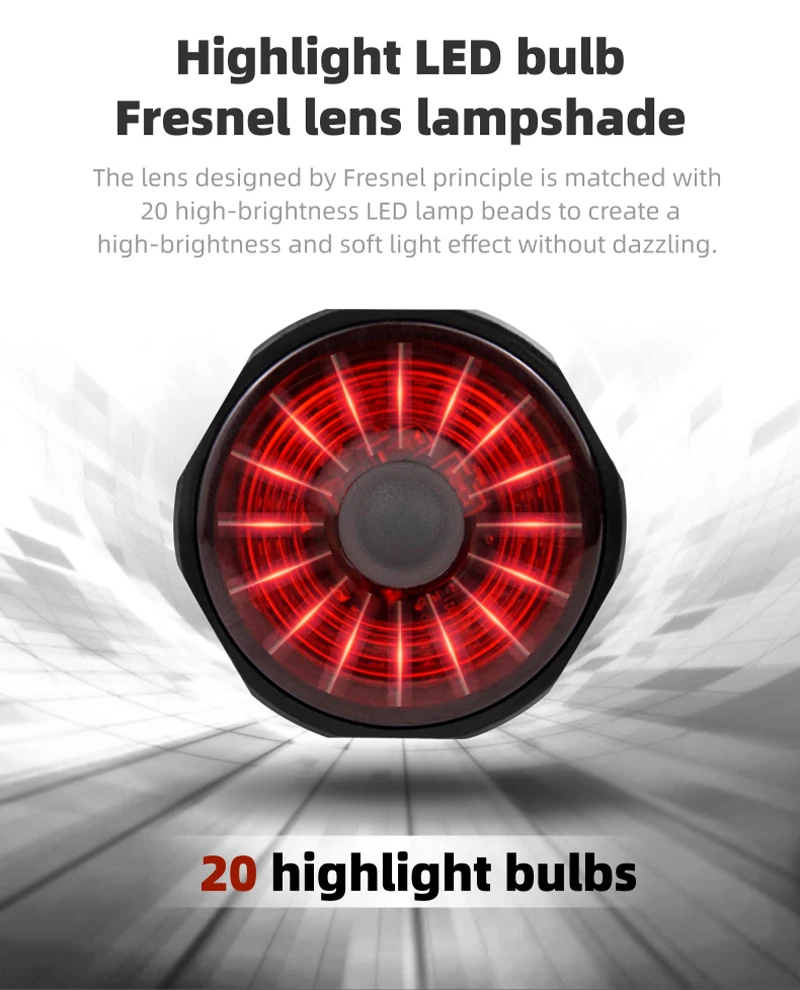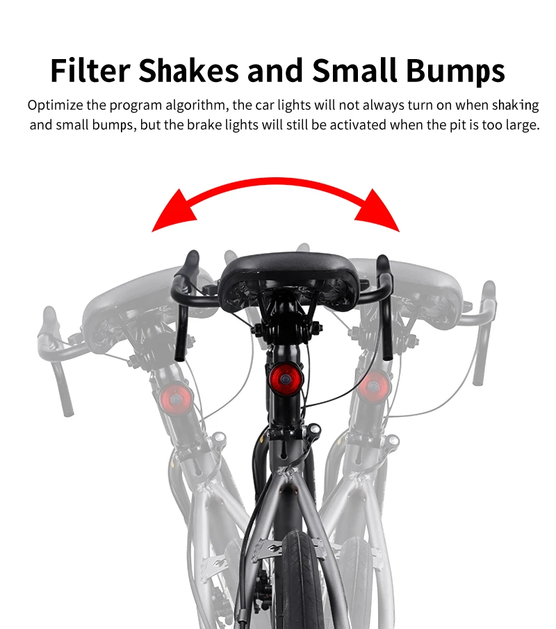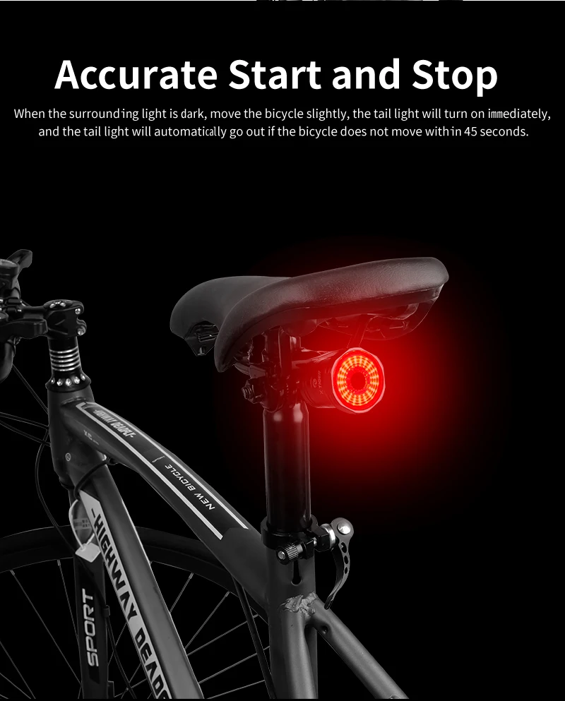 【Light sensor start and stop】- During the riding process, when the surrounding light is dim, the tail light will automatically turn on, and where the light is strong, the tail light will automatically turn off after 30 seconds.