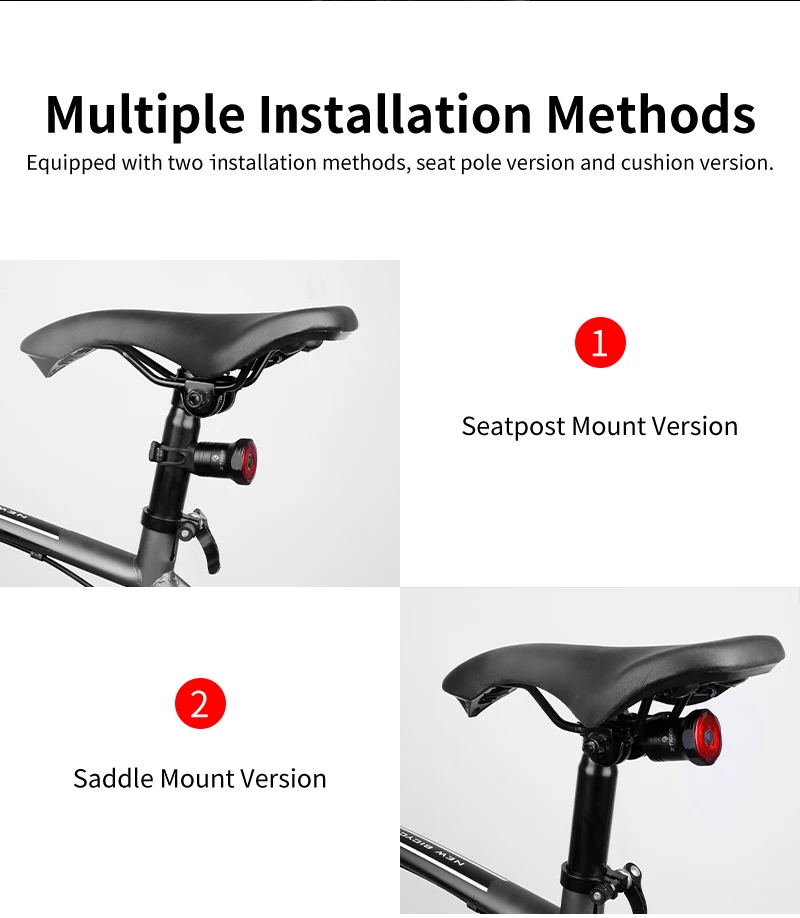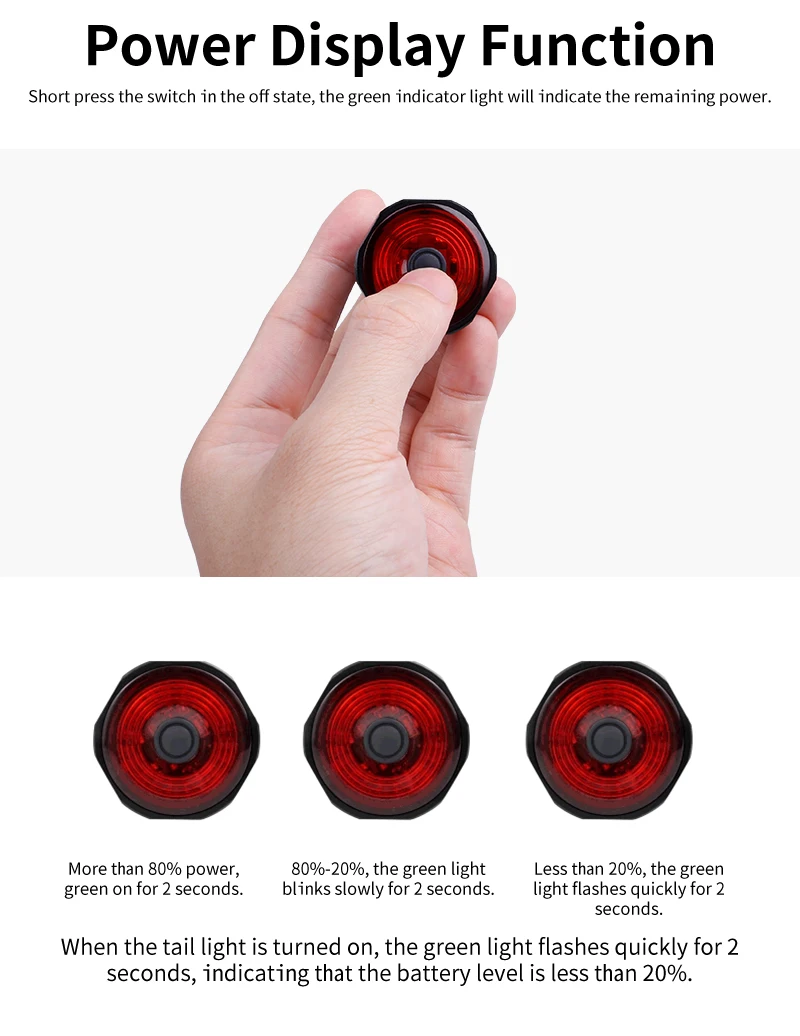 【Manual & Auto Modes】- The smart bike tail light will automatically turn off after 30 seconds when it detects no movement, and once it is touched or the bike is detected moving, the light will automatically turn on again. Manual mode requires the taillight to be turned off by yourself.