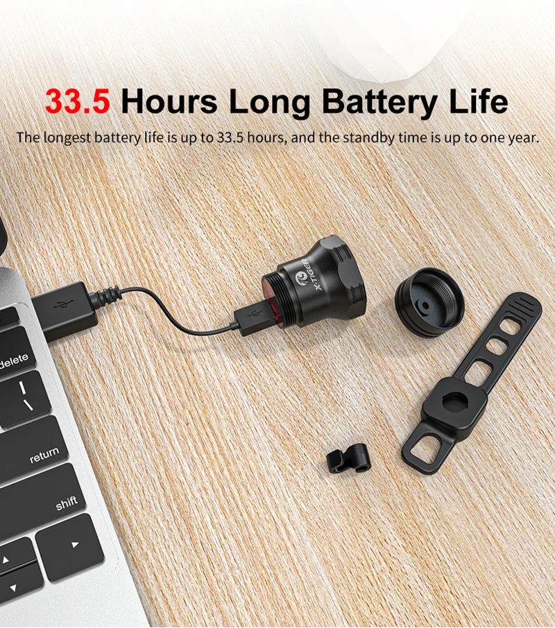 【Durable Battery & Charge Indicator】- The bike light has a built-in 420mAh Li-ion battery, which can last for 9 hours (maximum brightness) running time when fully charged. Click the switch in the off state, and the indicator light will indicate the remaining power.