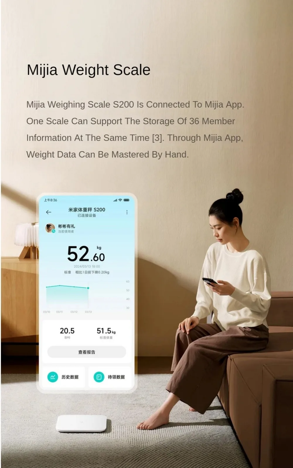 2.Mijia Weight Scale S200 only supports binding connection with Mijia APP.