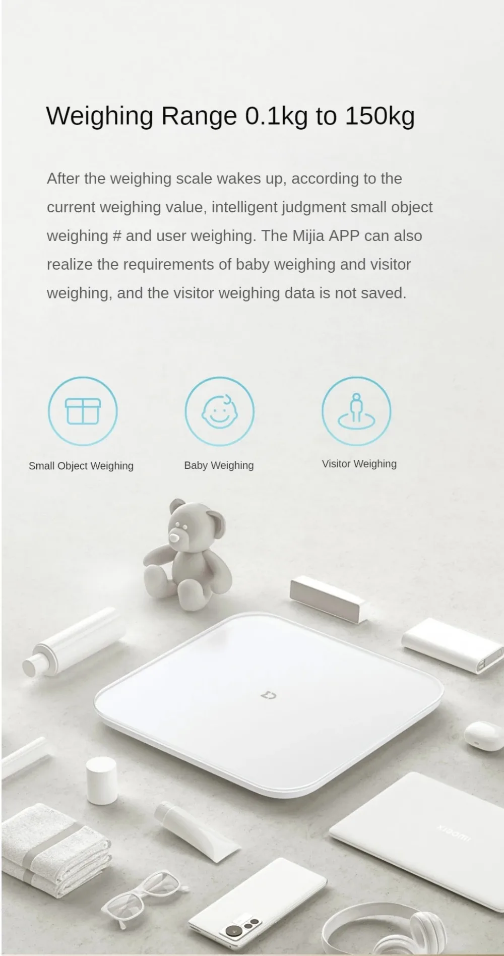 1.Need at least 100g to start Mijia Weight Scale S200.