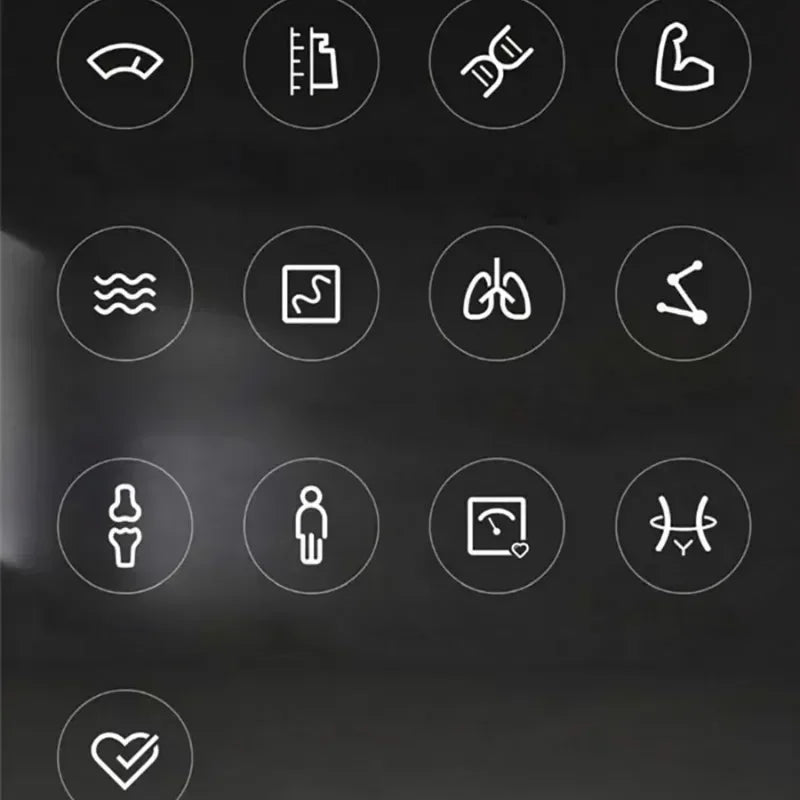 With high-precision BIA fat measurement chip, you can know 13 items of body data, including weight, BMI, body fat percentage, muscle mass, moisture content, protein rate, visceral fat grade, basal metabolism, bone mass, body age, ideal weight, body shape, and health score, and comprehensively understand the physical health status.